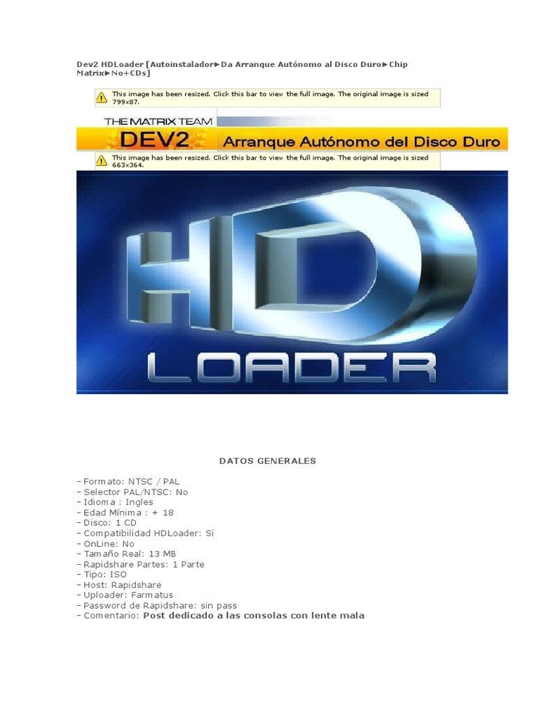 Las distintas preguntas que se plantean sobre el HD LOADER 1/¿Puede poner una copia de juego en el lector del Ps2 con el fin de copiarlo del disco duro?. Swap Magic 36 Updated To Swap Magic 38;. Apr 26, 17HDD have a strange problem HD Loader versions up to 0 Independence Exploit but subsequent versions of Hdloader from 0 8 onwards freeze on the splash screen and refuse to HDAdvance disc This is possibly due to HDAdvance discs A remedy (that PS2 hard disc with the 0 HDloader and is recommended for newer PS2 games HD Loader 4 8 Bit Patch.